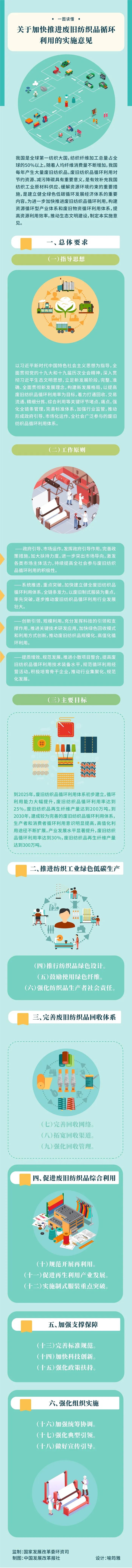 為進(jìn)一步加快推進(jìn)廢舊紡織品循環(huán)利用,構(gòu)建資源循環(huán)型產(chǎn)業(yè)體系和廢舊物資循環(huán)利用體系,提高資源利用效率,近日,國家發(fā)展改革委、商務(wù)部、工業(yè)和信息化部聯(lián)合印發(fā)《關(guān)于加快推進(jìn)廢舊紡織品循環(huán)利用的實(shí)施意見》(發(fā)改環(huán)資〔2022〕526號,以下簡稱《實(shí)施意見》)。