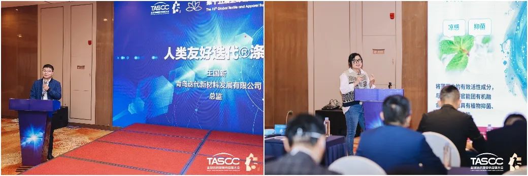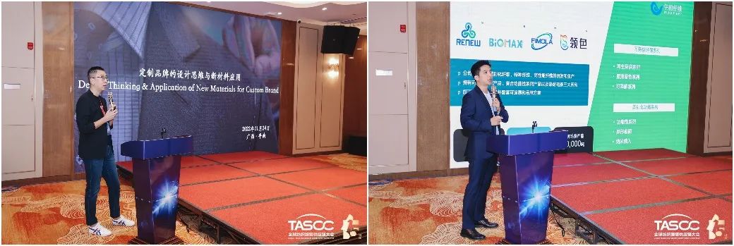 在“紡織服裝新材料供應(yīng)鏈聯(lián)盟會議”中,青島酷特智能股份有限公司紅領(lǐng)品牌設(shè)計(jì)總監(jiān)年春橋提出了定制品牌的設(shè)計(jì)思維趨勢、采買邏輯、新材料應(yīng)用方向。江蘇垶恒復(fù)合材料有限公司總經(jīng)理喬智介紹了綠色纖維的創(chuàng)新與應(yīng)用。青島迭代新材料發(fā)展有限公司董事長王遵元介紹了迭代滌綸實(shí)現(xiàn)的四大優(yōu)化。青島邦特生態(tài)紡織科技有限公司銷售總監(jiān)宋曉彤則介紹了自主研發(fā)的Naturefi系列產(chǎn)品。