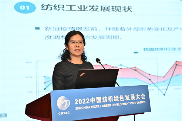 她系統(tǒng)總結(jié)了近些年紡織行業(yè)綠色轉(zhuǎn)型升級(jí)的成效,全行業(yè)通過綠色供給和消費(fèi)提升、能源消費(fèi)結(jié)構(gòu)持續(xù)優(yōu)化、產(chǎn)業(yè)布局良性發(fā)展等措施,在綠色纖維材料、高端紡織裝備、綠色工藝技術(shù)等方面取得較大進(jìn)展,初步建立起行業(yè)綠色制造創(chuàng)新體系,行業(yè)正在朝著“科技時(shí)尚綠色”新定位實(shí)現(xiàn)轉(zhuǎn)型與提升。她強(qiáng)調(diào),今后中國(guó)紡聯(lián)將繼續(xù)從創(chuàng)新、對(duì)標(biāo)、技改、協(xié)調(diào)、開源、管理六個(gè)方面,推進(jìn)能源消費(fèi)優(yōu)化提升,嚴(yán)格開展污染防治,加強(qiáng)資源節(jié)約和綜合利用,全面構(gòu)建綠色制造體系,引導(dǎo)綠色生產(chǎn)生活方式,穩(wěn)步提升綠色發(fā)展,實(shí)現(xiàn)成果共享發(fā)展。  中國(guó)紡織工業(yè)聯(lián)合會(huì)社會(huì)責(zé)任辦公室主任閻巖以《中國(guó)紡織服裝行業(yè)氣候創(chuàng)新行動(dòng)進(jìn)展與展望 》為題進(jìn)行了分享。她表示,推進(jìn)實(shí)現(xiàn)碳達(dá)峰碳中和,是全球應(yīng)對(duì)氣候危機(jī)的共同抉擇。為落實(shí)減排承諾,世界主要經(jīng)濟(jì)體正在加快完善綠色發(fā)展基本制度體系和政策體系。當(dāng)前,發(fā)達(dá)國(guó)家正在制定或?qū)嵤┮跃G色低碳為核心的貿(mào)易規(guī)則,推動(dòng)綠色成為世界價(jià)值體系的核心基礎(chǔ),我國(guó)紡織服裝行業(yè)正面臨綠色規(guī)則、綠色消費(fèi)、綠色資本多重變化和挑戰(zhàn)。
