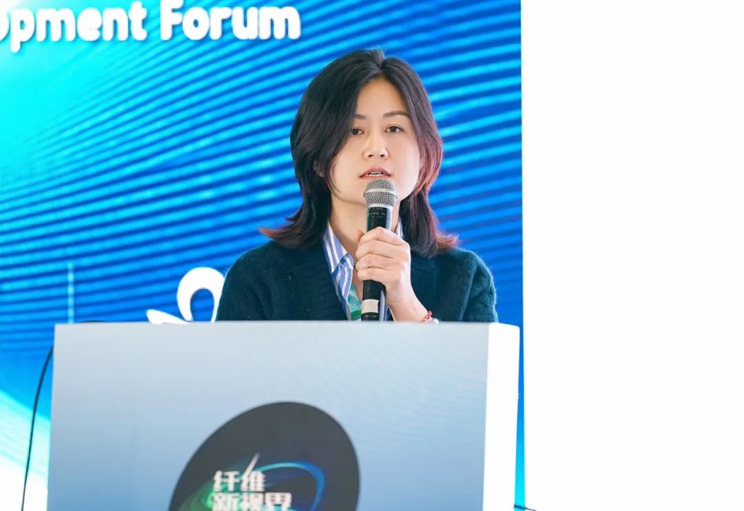江蘇盛虹化纖新材料有限公司品牌總監(jiān)繆佳做“碳捕集聚酯纖維---低碳與創(chuàng)新的融合”專題報告。他表示,隨著聚酯纖維產(chǎn)業(yè)不斷發(fā)展,其原料從原油逐漸發(fā)展為廢棄聚酯瓶、廢舊紡織品和二氧化碳。為實現(xiàn)“雙碳”目標貢獻盛虹力量,2021年9月盛虹啟動了“15萬噸二氧化碳捕集與綜合利用項目”并在國內(nèi)率先啟動碳捕集利用-綠色甲醇-新能源材料的產(chǎn)業(yè)鏈建設(shè),2024年4月正式量產(chǎn)碳捕集聚酯。根據(jù)第三方認證機構(gòu)SGS的研究,碳捕集聚酯纖維的碳足跡較原生聚酯纖維下降28.4%。1噸碳捕集聚酯纖維可以利用約364kg的二氧化碳,盛虹一期項目擁有3萬噸碳捕集聚酯產(chǎn)能,相當于10000噸二氧化碳排放,也相當于100萬棵樹一年的固碳量。目前碳捕集聚酯已添加追蹤劑,并可在第三方平臺追溯。碳捕集聚酯項目榮獲“2024年國際紡聯(lián)可持續(xù)和創(chuàng)新獎”,同時安踏使用碳捕集聚酯纖維生產(chǎn)的冰甲羽絨服獲得德國ISPO AWARD全球創(chuàng)新獎。