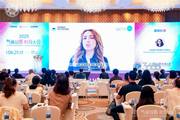 《聯(lián)合國(guó)氣候變化框架公約》秘書處全球氣候行動(dòng)行業(yè)參與負(fù)責(zé)人林迪塔(Lindita Xhaferi Salihu)為大會(huì)做視頻致辭。她在視頻中肯定了中國(guó)紡聯(lián)CNTAC在全球產(chǎn)業(yè)鏈氣候轉(zhuǎn)型中的重要作用,并呼吁全球協(xié)作實(shí)現(xiàn)《時(shí)尚產(chǎn)業(yè)氣候行動(dòng)憲章》目標(biāo)。