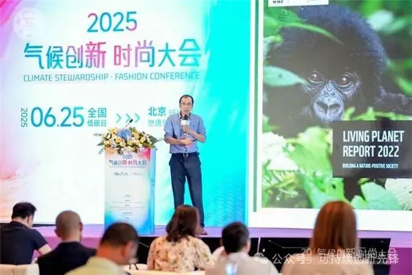 在主題一“價(jià)值鏈:時(shí)尚產(chǎn)業(yè)氣候創(chuàng)新路徑”部分, 世界自然基金會(huì)(瑞士)北京代表處上海區(qū)域項(xiàng)目主任任文偉分享了其在紡織行業(yè)綠色轉(zhuǎn)型的戰(zhàn)略與實(shí)踐。他在分享中指出,紡織行業(yè)作為全球供應(yīng)鏈最復(fù)雜的行業(yè)之一,從設(shè)計(jì)、原料到消費(fèi)、回收的全鏈條均蘊(yùn)藏巨大減碳空間。WWF通過(guò)開(kāi)發(fā)涵蓋評(píng)估、供應(yīng)鏈分析、戰(zhàn)略結(jié)合及政策披露的完整工具體系,已與安踏集團(tuán)等品牌合作推動(dòng)綠色轉(zhuǎn)型。例如,與安踏集團(tuán)的合作包括共同致力于落實(shí)聯(lián)合國(guó)2030可持續(xù)發(fā)展目標(biāo)(SDGs),推動(dòng)紡織行業(yè)可持續(xù)發(fā)展、生物多樣性保護(hù)與公眾傳播等領(lǐng)域的工作。此外,雙方還利用水管理創(chuàng)新方法,對(duì)供應(yīng)鏈進(jìn)行水風(fēng)險(xiǎn)綜合評(píng)估,提高供應(yīng)鏈應(yīng)對(duì)水風(fēng)險(xiǎn)的韌性,助力產(chǎn)業(yè)鏈上下游推進(jìn)綠色轉(zhuǎn)型。他強(qiáng)調(diào),全球氣候變化與生物多樣性喪失兩大挑戰(zhàn)緊密關(guān)聯(lián),需借助綠色生產(chǎn)與消費(fèi)的協(xié)同作用,促使行業(yè)實(shí)現(xiàn)從‘綠色’到‘精益’的轉(zhuǎn)型升級(jí)。
