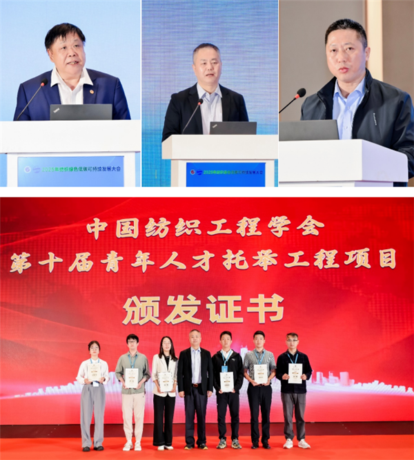 今天是第九個(gè)“全國(guó)科技工作者日”。在此前夕,5月24日,2025年紡織綠色低碳可持續(xù)發(fā)展大會(huì)在山東青島啟幕。開幕式上,中國(guó)紡織工程學(xué)會(huì)理事長(zhǎng)伏廣偉、青島大學(xué)副校長(zhǎng)李榮貴、青島市科協(xié)副主席王輝發(fā)表致辭,共同強(qiáng)調(diào)紡織綠色低碳可持續(xù)發(fā)展是時(shí)代賦予紡織人的使命,也是紡織行業(yè)實(shí)現(xiàn)高質(zhì)量發(fā)展的必由之路。會(huì)上,伏廣偉為中國(guó)紡織工程學(xué)會(huì)托舉的中國(guó)科協(xié)第十屆“青年人才托舉工程”6位入選者劉春玉、李昶、高魯、梁躍耀、姜亞龍、龔維頒發(fā)證書,勉勵(lì)他們弘揚(yáng)科學(xué)家精神,勇當(dāng)紡織高水平科技自立自強(qiáng)的排頭兵,為紡織強(qiáng)國(guó)建設(shè)貢獻(xiàn)青春力量。