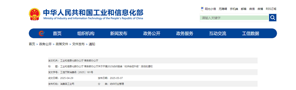 工業(yè)和信息化部辦公廳關(guān)于做好2025年工業(yè)和信息化質(zhì)量工作的通知工信廳科函〔2025〕161號