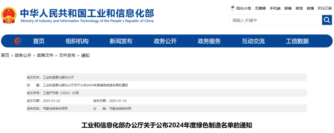 1月23日,工業(yè)和信息化部網(wǎng)站公布了 2024 年度綠色制造名單。