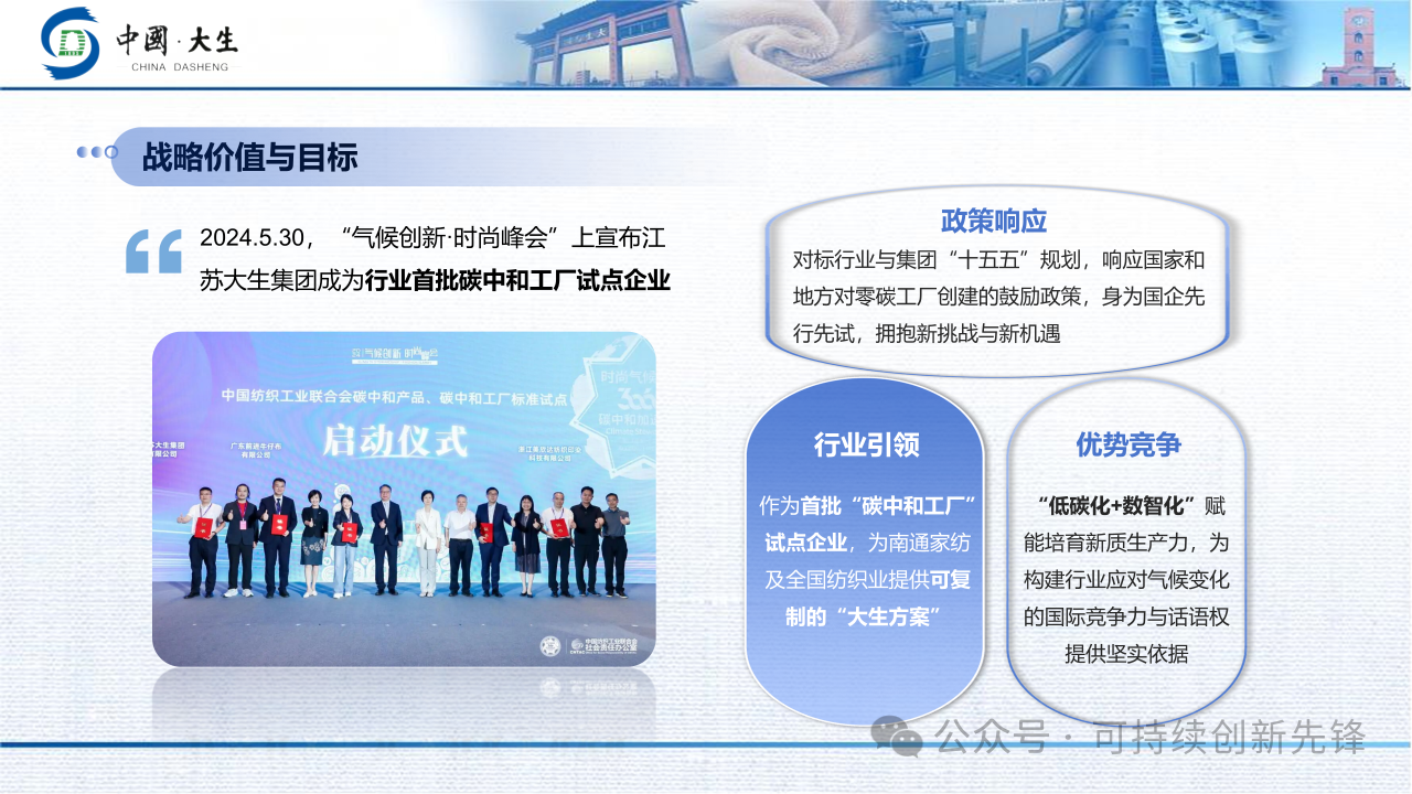 大生紗廠在江蘇南通舉行 “碳中和智慧紡紗工廠” 投產(chǎn)儀式,同步發(fā)布《碳中和工廠實(shí)施計(jì)劃》。
