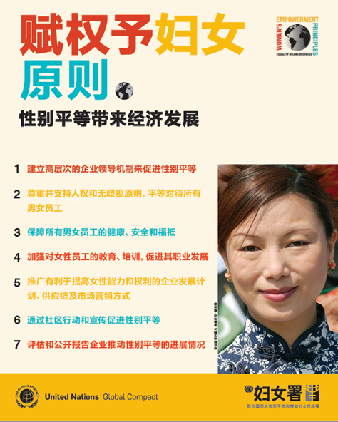 2010年,聯(lián)合國婦女署(UN Women)和聯(lián)合國全球契約辦公室(UN Global Compact)共同發(fā)起了《賦權(quán)予女性原則》(WEPs),指導(dǎo)行業(yè)企業(yè)關(guān)注婦女權(quán)益,推動性別平等。