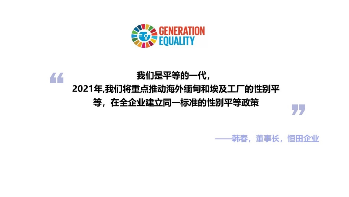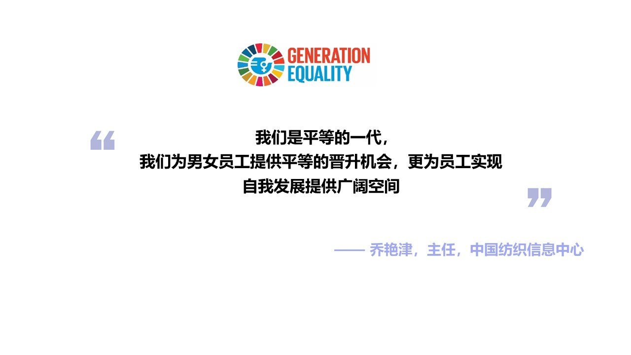 2020年,中紡聯(lián)參與聯(lián)合國(guó)婦女署WE Empower Asia項(xiàng)目,在行業(yè)內(nèi)大力推廣《賦權(quán)予婦女原則(WEPs)》,截至2020年12月,包括中國(guó)紡織信息中心在內(nèi)的91家行業(yè)企業(yè)簽署了《賦權(quán)予婦女原則首席執(zhí)行官聲明》,承諾在企業(yè)層面落實(shí)“賦權(quán)予婦女原則”,以促進(jìn)工作場(chǎng)所、市場(chǎng)和社區(qū)中的性別平等。