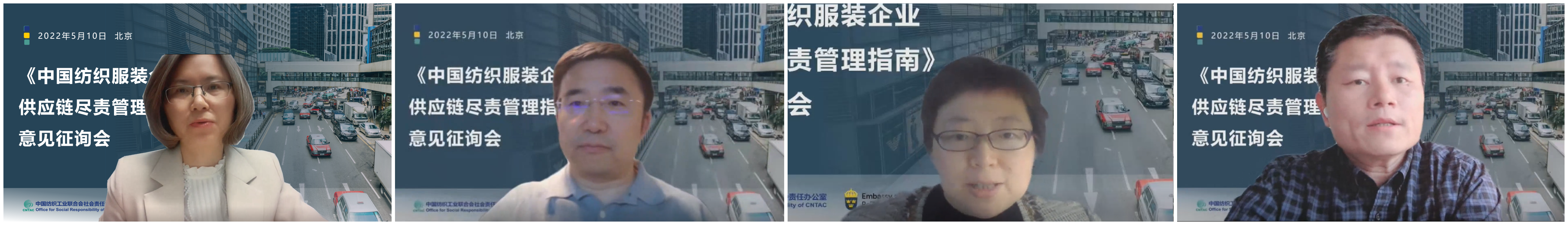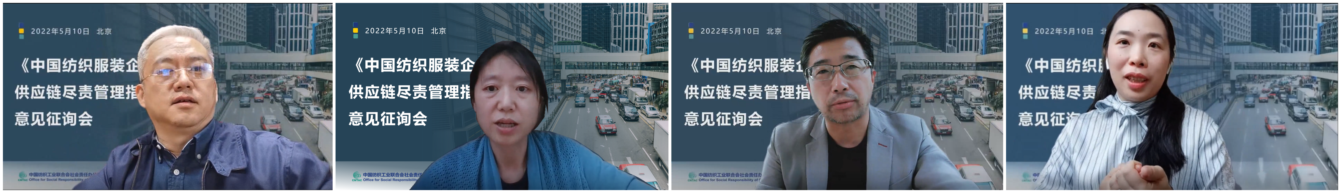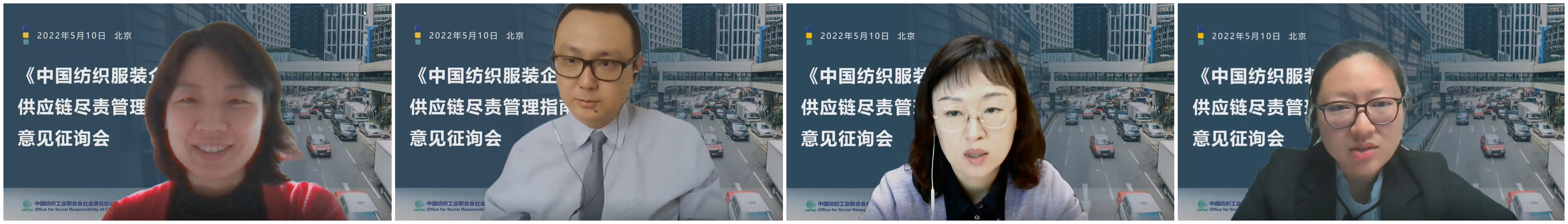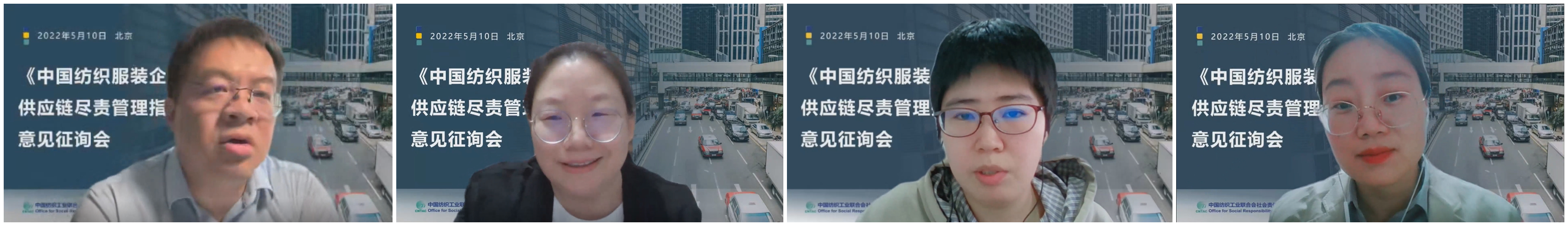 2022年5月10日下午,由中國(guó)紡織工業(yè)聯(lián)合會(huì)社會(huì)責(zé)任辦公室主辦的《中國(guó)紡織服裝企業(yè)社會(huì)與環(huán)境盡責(zé)管理指南(征求意見(jiàn)稿)》(暫定名,下稱(chēng)“《盡責(zé)管理指南》”或“指南”)意見(jiàn)征詢會(huì)在線上成功舉辦。來(lái)自南開(kāi)大學(xué)、北京工商大學(xué)、聯(lián)合國(guó)開(kāi)發(fā)計(jì)劃署(UNDP)、聯(lián)合國(guó)兒童基金會(huì)(UNICEF)、經(jīng)濟(jì)合作與發(fā)展組織(OECD)、德國(guó)國(guó)際合作機(jī)構(gòu)(GIZ)等十五家機(jī)構(gòu)的二十余位專(zhuān)家參加了本次會(huì)議,就盡責(zé)管理指南的改進(jìn)與實(shí)施進(jìn)行了全面、深入的討論。