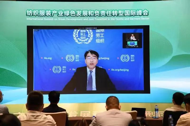 國(guó)際勞工組織北京局局長(zhǎng)李昌徽發(fā)表線上講話并對(duì)中國(guó)紡織服裝產(chǎn)業(yè)走綠色化發(fā)展和積極開展行業(yè)社會(huì)責(zé)任建設(shè)工作的成就表示了積極肯定和贊賞。并表示本次峰會(huì)的舉辦為與會(huì)人員提供了分享知識(shí)、交流見解的平臺(tái),并且提出了行業(yè)綠色發(fā)展和公平轉(zhuǎn)型的愿景,將更好地促進(jìn)中國(guó)、亞洲和全球該行業(yè)的綠色發(fā)展和責(zé)任轉(zhuǎn)型。
