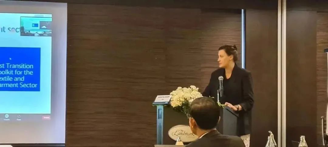 本次峰會(huì)除了在虎門設(shè)立活動(dòng)主會(huì)場(chǎng),還在泰國(guó)設(shè)立了曼谷分會(huì)場(chǎng),就“紡織服裝產(chǎn)業(yè)的公正轉(zhuǎn)型 (TAGS)”進(jìn)行專題研討。曼谷專題技術(shù)分論壇在國(guó)際勞工組織亞太地區(qū)綠色就業(yè)、氣候行動(dòng)和公正轉(zhuǎn)型技術(shù)專家Eric Roeder的主持下,邀請(qǐng)了國(guó)際勞工組織環(huán)境與體面工作高級(jí)專家、亞太地區(qū)綠色就業(yè)與責(zé)任轉(zhuǎn)型協(xié)調(diào)員Cristina Martinez博士,悉尼科技大學(xué)可持續(xù)未來(lái)研究所(ISF)研究主任、亞洲紡織生態(tài)創(chuàng)新研究網(wǎng)絡(luò)(TERN)召集人Samantha Sharpe博士,國(guó)際勞工組織社會(huì)對(duì)話與勞資關(guān)系高級(jí)專家尹英模Yongmo Yoon,聯(lián)合國(guó)開發(fā)計(jì)劃署(UNDP)駐華代表處可持續(xù)發(fā)展本地化項(xiàng)目主任王東,分別從“國(guó)際勞工組織責(zé)任轉(zhuǎn)型指南及其應(yīng)用”、“國(guó)際勞工組織為亞洲紡織和服裝行業(yè)提供的技術(shù)策略”、“社會(huì)對(duì)話在促進(jìn)公正轉(zhuǎn)型中的作用”等方面進(jìn)行演講闡述和點(diǎn)評(píng)總結(jié)。