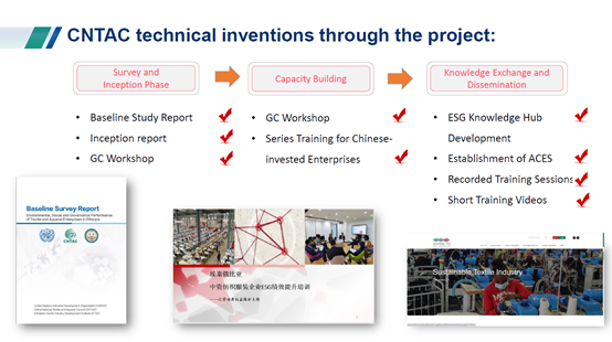 隨后,中國(guó)紡織工業(yè)聯(lián)合會(huì)社會(huì)責(zé)任辦公室首席研究員梁曉暉就中國(guó)紡聯(lián)和中資企業(yè)在項(xiàng)目中的工作成果做簡(jiǎn)要匯報(bào)。 中國(guó)紡聯(lián)在項(xiàng)目中的技術(shù)貢獻(xiàn) 當(dāng)前,項(xiàng)目已取得了許多有益的成果,“我們看到這個(gè)項(xiàng)目首要的特點(diǎn),就是聚焦。”中國(guó)商務(wù)部國(guó)際經(jīng)貿(mào)關(guān)系司副處長(zhǎng)耿琳琳對(duì)項(xiàng)目成果給出了高度評(píng)價(jià)。她認(rèn)為,聚焦于一個(gè)國(guó)家、一個(gè)產(chǎn)業(yè)的可持續(xù)發(fā)展能力提升項(xiàng)目,給產(chǎn)業(yè)帶來(lái)了切實(shí)的變化與提升。“第二是協(xié)同。”項(xiàng)目進(jìn)行中,中國(guó)紡織工業(yè)聯(lián)合會(huì)發(fā)揮行業(yè)組織的平臺(tái)優(yōu)勢(shì),廣泛聯(lián)絡(luò)在埃塞俄比亞投資運(yùn)營(yíng)的中資企業(yè),依托聯(lián)合國(guó)工業(yè)發(fā)展組織、埃塞俄比亞制造業(yè)發(fā)展研究院等合作單位的各方資源,發(fā)揮“1+1>2”的協(xié)同效應(yīng),進(jìn)行了扎實(shí)的調(diào)研,并提出了切實(shí)可行的建議和舉措。“第三是賦能,我們看到了項(xiàng)目對(duì)產(chǎn)業(yè)、對(duì)企業(yè)、對(duì)民眾的賦能,特別是對(duì)女性員工的高度關(guān)注。”耿琳琳還強(qiáng)調(diào),項(xiàng)目在促進(jìn)女性員工就業(yè)、助力女性員工職業(yè)發(fā)展、提升女性員工工作滿意度等方面做出的努力,具有重大的社會(huì)意義與可持續(xù)發(fā)展價(jià)值。