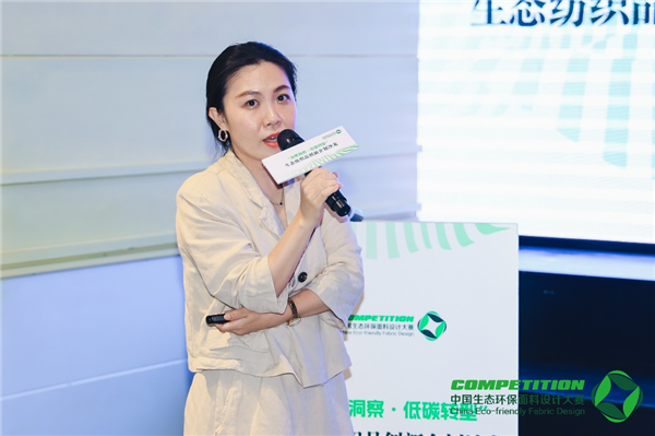 “在綠色設(shè)計(jì)、清潔生產(chǎn)、綠色物流、循環(huán)應(yīng)用等領(lǐng)域,我們都在強(qiáng)調(diào)通過綠色技術(shù)推動(dòng)綠色價(jià)值鏈的創(chuàng)新。”中國(guó)紡織信息中心創(chuàng)意設(shè)計(jì)部高級(jí)產(chǎn)品經(jīng)理于婷婷在會(huì)上對(duì)2023第六屆中國(guó)生態(tài)環(huán)保面料設(shè)計(jì)大賽主題和評(píng)審標(biāo)準(zhǔn)進(jìn)行了解讀。她指出,綠色消費(fèi)一方面是消費(fèi)者的選擇,另一方面更有賴于供給側(cè)的引導(dǎo)。行業(yè)需要從時(shí)尚性、創(chuàng)新性、商業(yè)性等綜合維度,將“綠色時(shí)尚”從設(shè)計(jì)端貫穿到產(chǎn)品端。