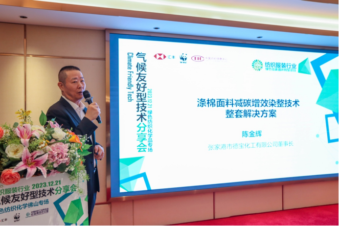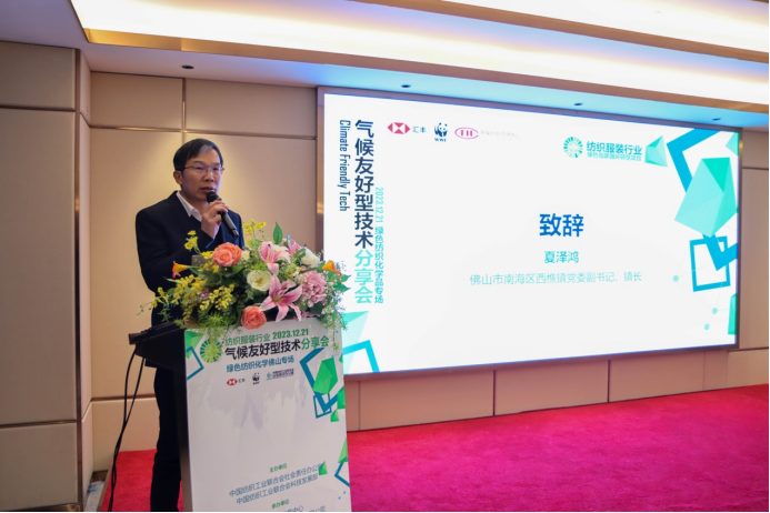 2023年12月21日,由中國紡織工業(yè)聯(lián)合會社會責(zé)任辦公室、中國紡織工業(yè)聯(lián)合會科技發(fā)展部聯(lián)合主辦的氣候友好型技術(shù)分享會-綠色紡織化學(xué)品專場在佛山西樵成功舉辦。會議由匯豐銀行(中國)和世界自然基金會(瑞士)北京代表處支持,中國紡織信息中心、中聯(lián)品檢(佛山)檢驗技術(shù)有限公司承辦。