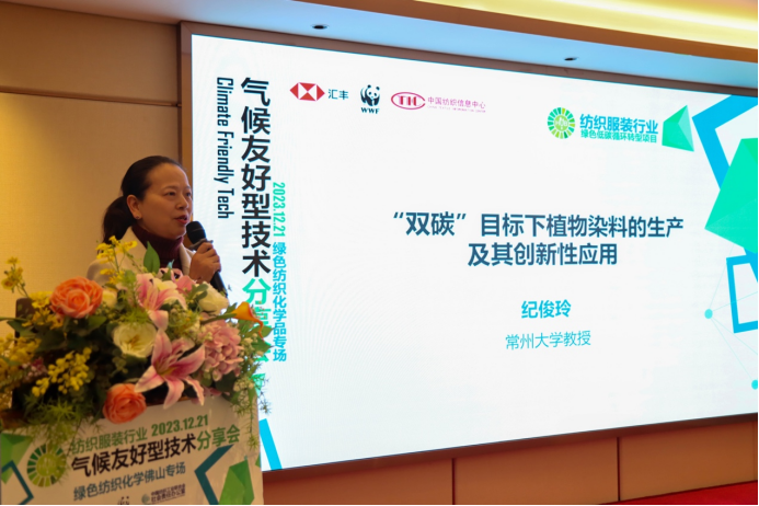 紀(jì)俊玲教授分享了關(guān)于雙碳目標(biāo)下植物染料的生產(chǎn)及其創(chuàng)新性應(yīng)用的研究。她強(qiáng)調(diào)了植物染料在實現(xiàn)碳中和和綠色經(jīng)濟(jì)中的重要作用,特別是在服裝紡織產(chǎn)業(yè)的應(yīng)用。她詳細(xì)探討了植物染料的定義、生產(chǎn)關(guān)鍵技術(shù)、以及其在紡織品中的創(chuàng)新性應(yīng)用。紀(jì)教授的演講展示了植物染料作為一種可持續(xù)、環(huán)保的染色選項在紡織行業(yè)中的潛力及其對傳統(tǒng)染色技術(shù)的挑戰(zhàn)。