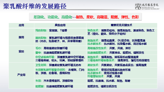 張秀芹教授介紹了綠色可持續(xù)紡織材料-生物基纖維,并強調(diào)生物基合成纖維不等于生物可降解纖維。同時,張教授也介紹了聚乳酸纖維的制成、其優(yōu)缺點、以及應用領域。張教授表示,相較于滌綸,聚乳酸纖維具有環(huán)保、無毒、阻燃、可降解、保暖、透氣、不回潮、天然、親膚、抑菌、抗螨、抗過敏等優(yōu)勢。如果可以將玉米秸稈轉(zhuǎn)變成乳酸,再變?yōu)榫廴樗幔摲N技術(shù)將會是高值化的應用。