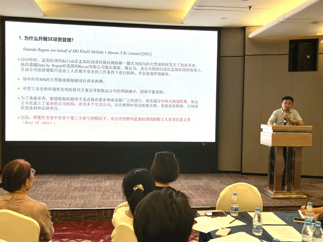 中國紡織工業(yè)聯(lián)合會(huì)社會(huì)責(zé)任辦公室首席研究員梁曉暉博士首先以《企業(yè)社會(huì)與環(huán)境盡責(zé):為什么?》為題,分別從供應(yīng)鏈責(zé)任的現(xiàn)狀、國際規(guī)范與趨勢、供應(yīng)鏈盡責(zé)管理及對(duì)企業(yè)的建議等方面,為參會(huì)嘉賓深入解析了紡織服裝行業(yè)在全球化背景下面臨的挑戰(zhàn)和供應(yīng)盡責(zé)管理的重要性。他強(qiáng)調(diào)企業(yè)應(yīng)積極履行人權(quán)和環(huán)境責(zé)任,并通過有效的風(fēng)險(xiǎn)管理措施,確保供應(yīng)鏈的可持續(xù)性。隨后,梁曉暉博士又向參會(huì)嘉賓詳細(xì)解讀了歐盟了近期將正式生效的《企業(yè)可持續(xù)盡責(zé)指令》(CS3D),包括其立法背景和目的、適用范圍、核心要求,以及CS3D對(duì)中國企業(yè)的影響等內(nèi)容。