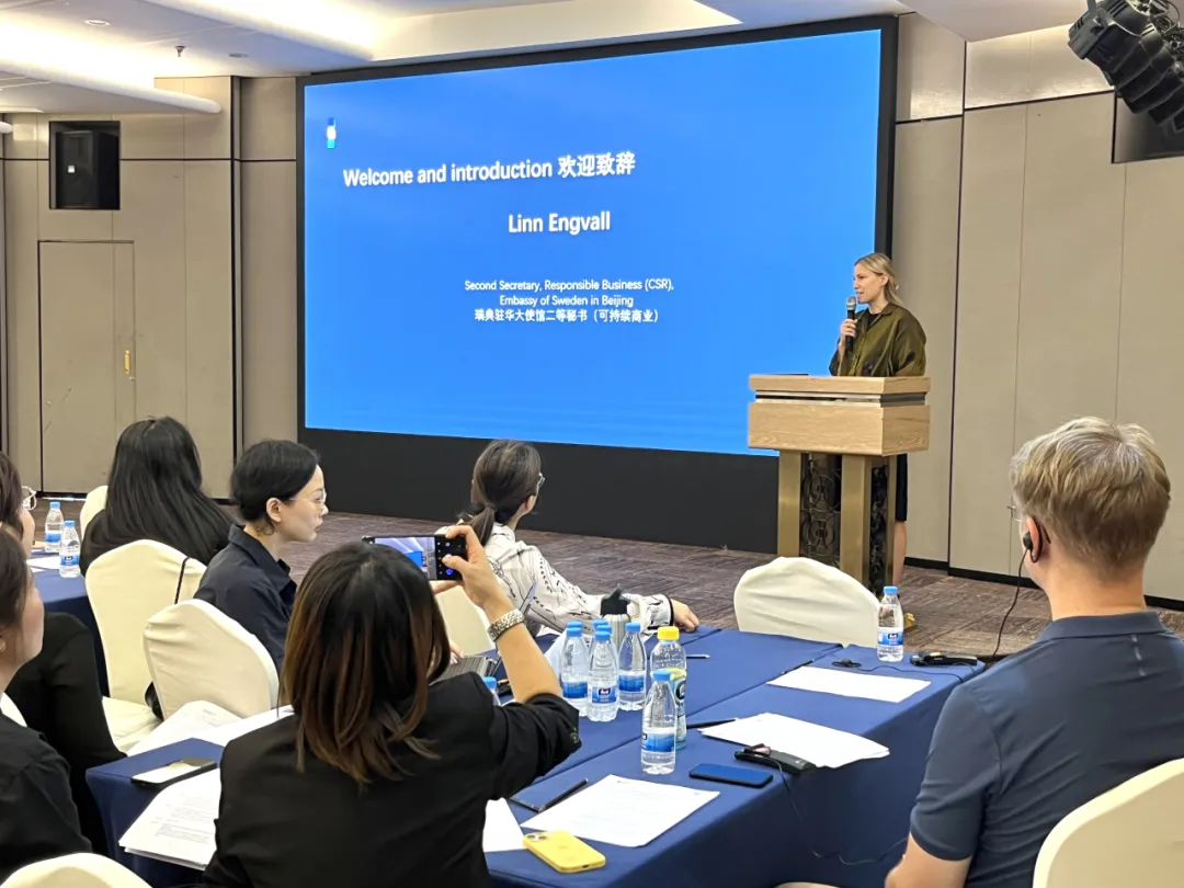 瑞典駐華大使館企業(yè)社會(huì)責(zé)任中心主任(可持續(xù)商業(yè)二等秘書)Linn Engvall女士在開場致辭中表示,希望大家能夠通過此次培訓(xùn)研討會(huì)更加深入地了解供應(yīng)鏈盡責(zé)管理的相關(guān)知識(shí)和工具,提升供應(yīng)鏈責(zé)任管理能力,推動(dòng)企業(yè)和行業(yè)可持續(xù)發(fā)展。