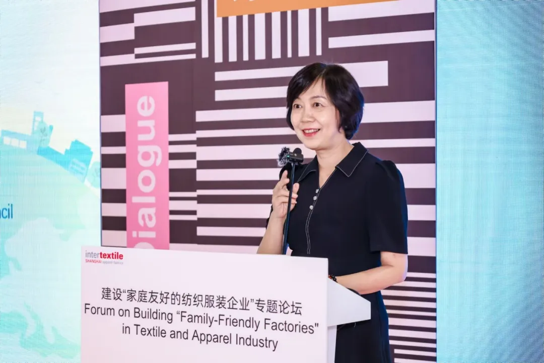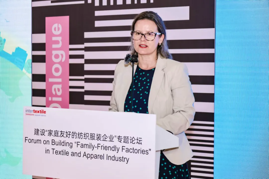 聯(lián)合國兒童基金會駐華辦事處合作與創(chuàng)新處處長艾德芙(Derval Usher)表示,自2019年起,中國紡聯(lián)與聯(lián)合國兒童基金會緊密合作,致力于推動家庭友好型工作場所建設(shè),并于2022年簽訂正式工作計劃。此計劃在中國紡聯(lián)會員企業(yè)供應(yīng)鏈中試點,涵蓋工廠實踐、行業(yè)指導及宣傳倡導,旨在利用商業(yè)力量助力父母平衡工作與育兒。她在發(fā)言中還特別強調(diào)了兒童早期發(fā)展的重要性,倡導性別平等及尊重工人權(quán)利,旨在通過多方合作,確保家庭友好政策的可持續(xù)實施,特別關(guān)注流動就業(yè)人員及有殘障兒童家庭的需求。她期待通過分享經(jīng)驗,推動家庭友好政策的政策倡導、推廣。