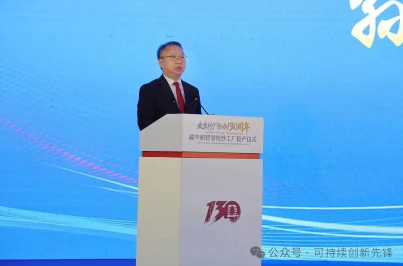 中國(guó)恒天集團(tuán)黨委書記、董事長(zhǎng)金永傳在致辭中回顧恒天集團(tuán)與大生集團(tuán)的合作歷程,指出雙方自上世紀(jì)九十年代起,在紡織裝備國(guó)產(chǎn)化、數(shù)字化紡紗車間、智慧紡紗工廠建設(shè)及此次碳中和工廠升級(jí)中始終并肩作戰(zhàn)。恒天旗下經(jīng)緯紡機(jī)為工廠提供全球領(lǐng)先的智能化裝備與低碳解決方案,這種產(chǎn)業(yè)鏈協(xié)同成為推動(dòng)行業(yè)前行的重要力量。他強(qiáng)調(diào),工廠投產(chǎn)既是大生 “敢為人先” 精神的延續(xù),也是中國(guó)紡織業(yè)踐行 “雙碳” 戰(zhàn)略的生動(dòng)詮釋,未來(lái)恒天將繼續(xù)與大生深化合作,共同突破關(guān)鍵技術(shù)、開(kāi)拓市場(chǎng),傳承張謇 “父教育而母實(shí)業(yè)” 精神。