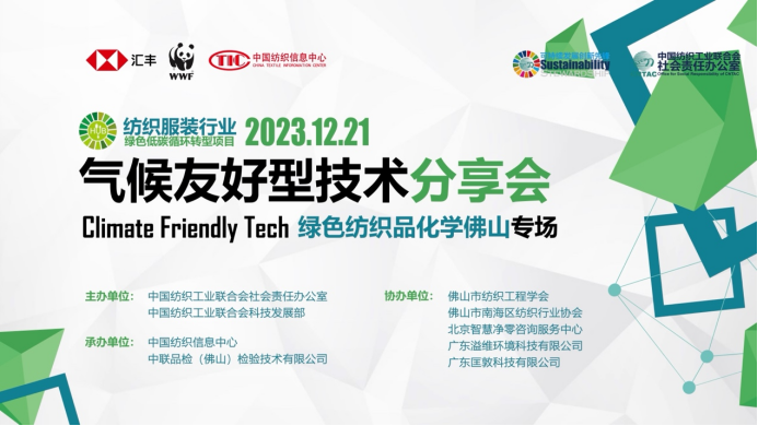 2023年12月21日,由中國紡織工業(yè)聯(lián)合會(huì)社會(huì)責(zé)任辦公室、中國紡織工業(yè)聯(lián)合會(huì)科技發(fā)展部聯(lián)合主辦的氣候友好型技術(shù)分享會(huì)-綠色紡織化學(xué)品專場在佛山西樵成功舉辦。
