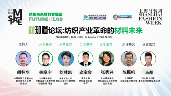 2023年3月25日,在2023秋冬上海時裝周期間,中國紡織工業(yè)聯(lián)合會社會責(zé)任辦公室與上海時裝周M SPACE共創(chuàng)聚談在上海合作舉辦了以“紡織產(chǎn)業(yè)革命的材料未來”為題的『材知道』論壇。