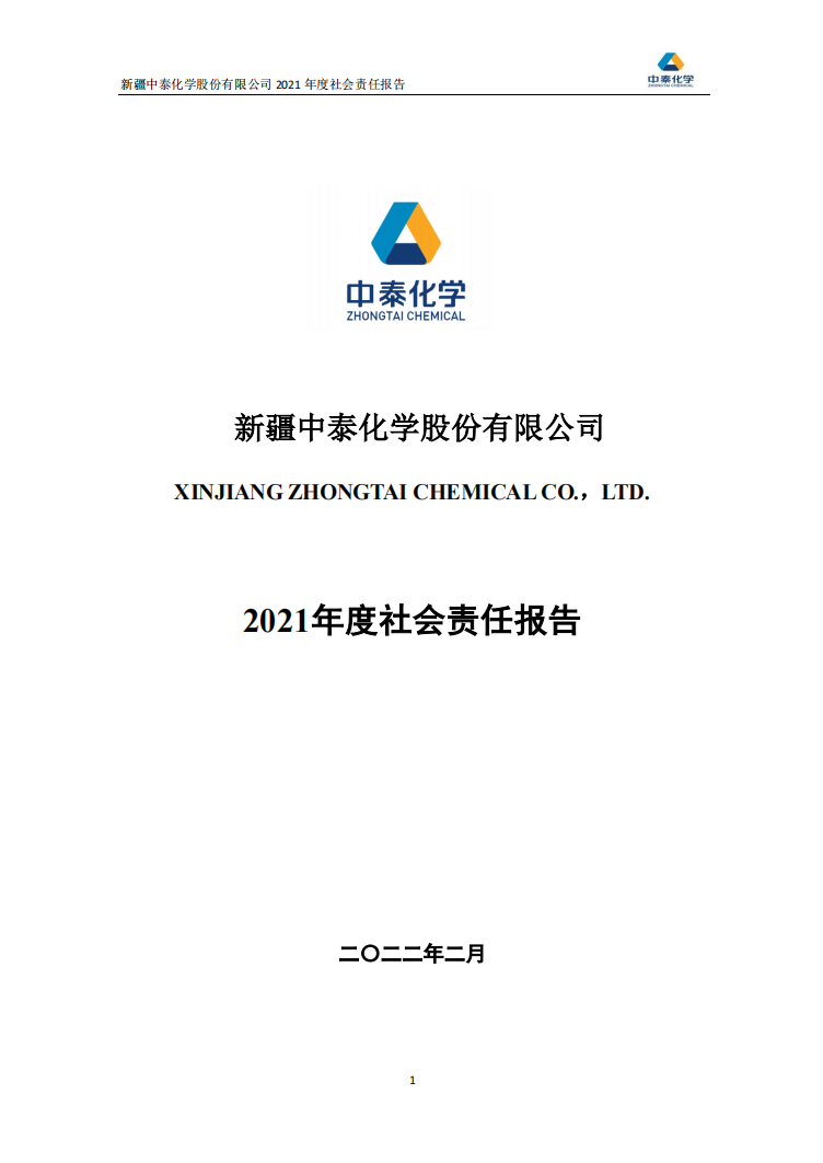 新疆中泰化學(xué)股份有限公司2021年度社會責(zé)任報告