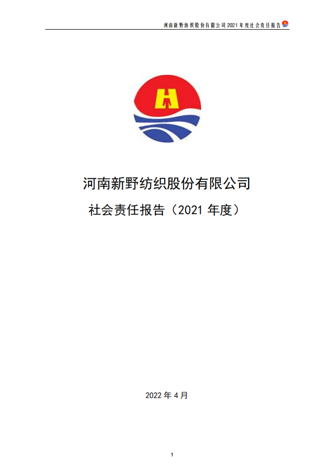 河南新野紡織股份有限公司社會責(zé)任報告(2021 年度)